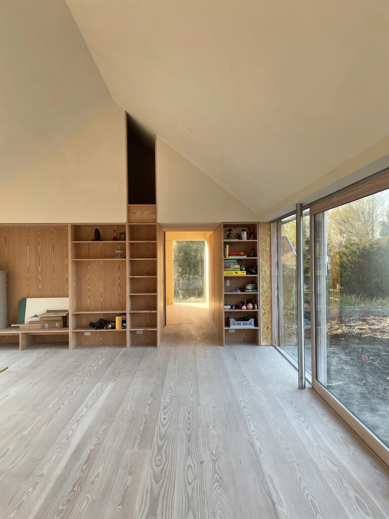 Vægge og lofter er behandlet med indfarvet fin lerpuds